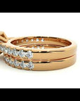 Inelul de Logodnă Pavè este încrustat cu un magnific diamant în tăietură Princess de 1.37 carate, selecționat meticulos pentru strălucirea sa deosebită și claritatea remarcabilă. Diamantul central este pus în valoare de montura Pavè, care adaugă un număr generos de moissanite mai mici, însumând un efect vizual de halo radiant ce amplifică frumusețea și luminozitatea diamantului principal.
