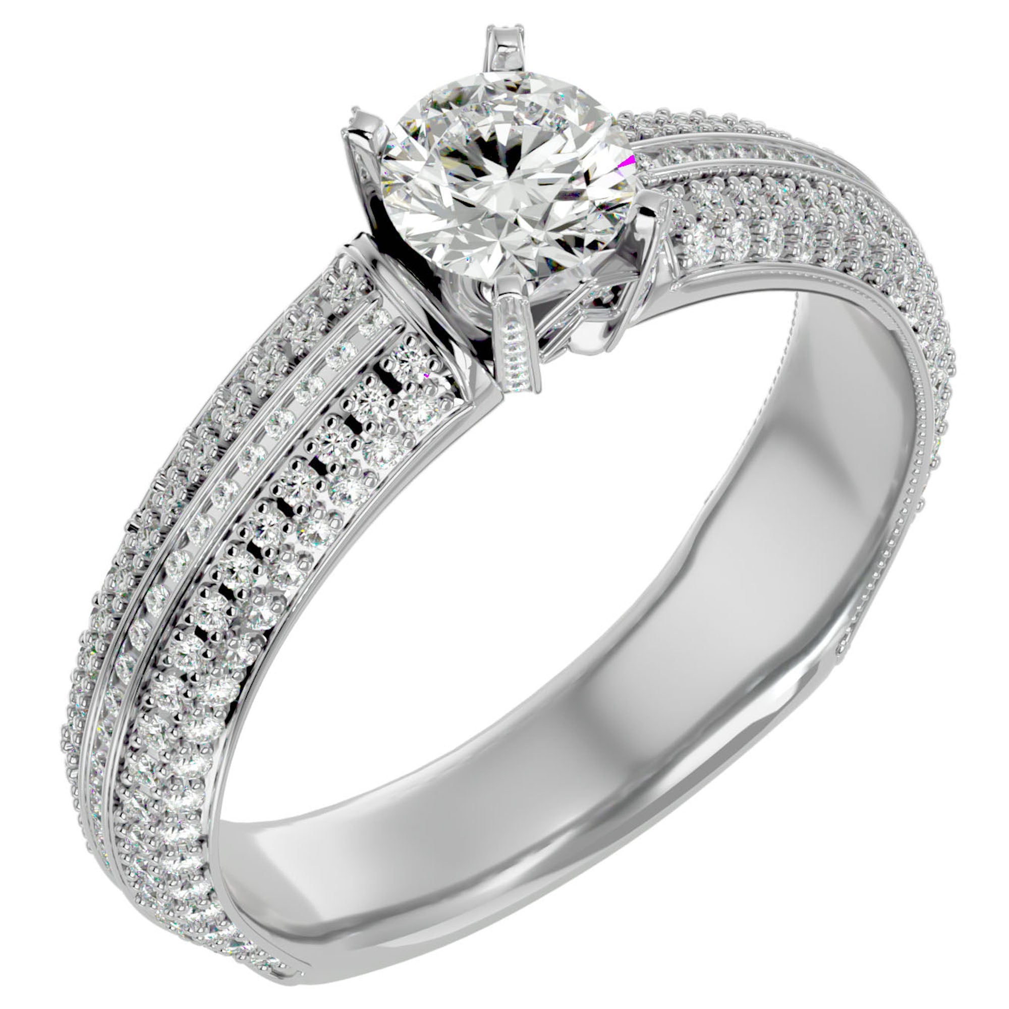 Împodobit cu diamante create în laborator de 1.01 ct, inelul Quatro Pavé strălucește cu o intensitate captivantă, evocând frumusețea și măreția unei iubiri eterne. Fiecare diamant creat în laborator este selectat cu grijă și montat cu o precizie desăvârșită, conferind acestei bijuterii o aură de rafinament, ideală pentru momentele speciale ce merită celebrate cu stil și grație.