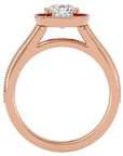 Decorat cu moissanite de 1.50 ct, montura halo pavé conferă o strălucire uluitoare, amplificând luminozitatea centrală a diamantului. Designul retro combinat cu eleganța contemporană face ca acest inel să fie o alegere perfectă pentru o cerere în căsătorie memorabilă.