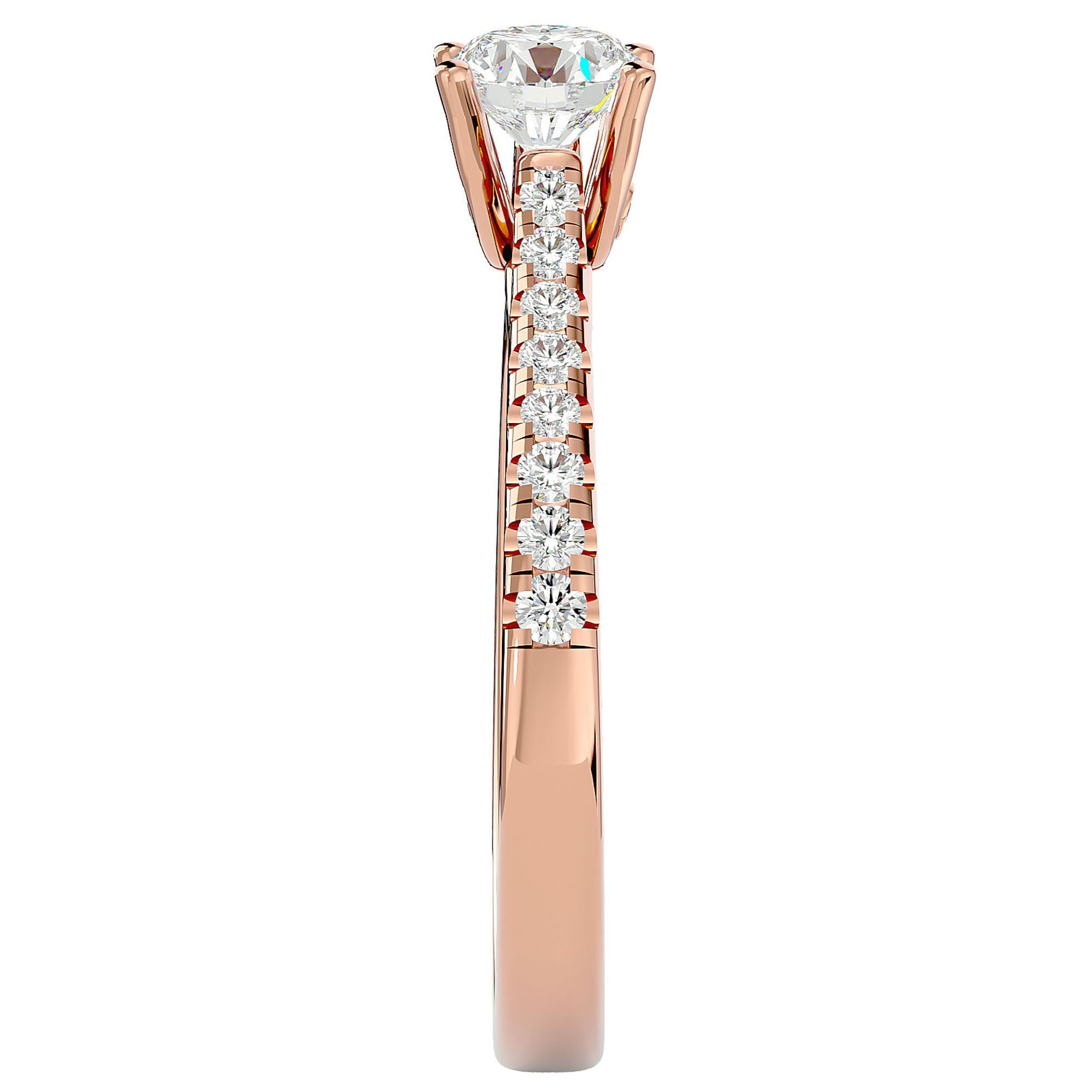 Împodobit cu diamante create în laborator de 0.85 ct, inelul Solitaire Pavé strălucește cu o intensitate captivantă, evocând frumusețea clasică și eleganța atemporală. Fiecare diamant creat în laborator este selectat cu grijă și montat cu o precizie desăvârșită, conferind acestei bijuterii o aură de distincție și rafinament, ideală pentru momentele speciale ce merită celebrate cu stil și grație.