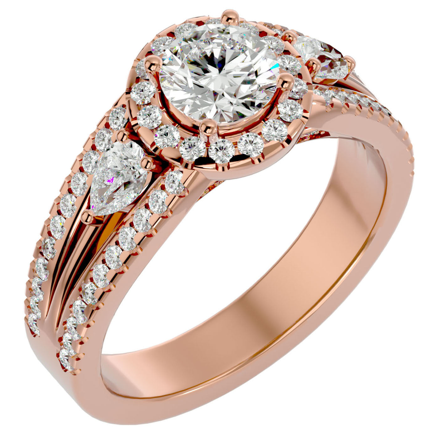 Ornamentat cu trei diamante create în laborator Pavè ce totalizează 1.43 carate, inelul este o capodoperă de strălucire și finețe. Fiecare diamant este meticulos ales pentru a asigura o luminozitate maximă și pentru a înfrumuseța montura cu o strălucire de neegalat, ce amintește de fastul și opulența balurilor regale.