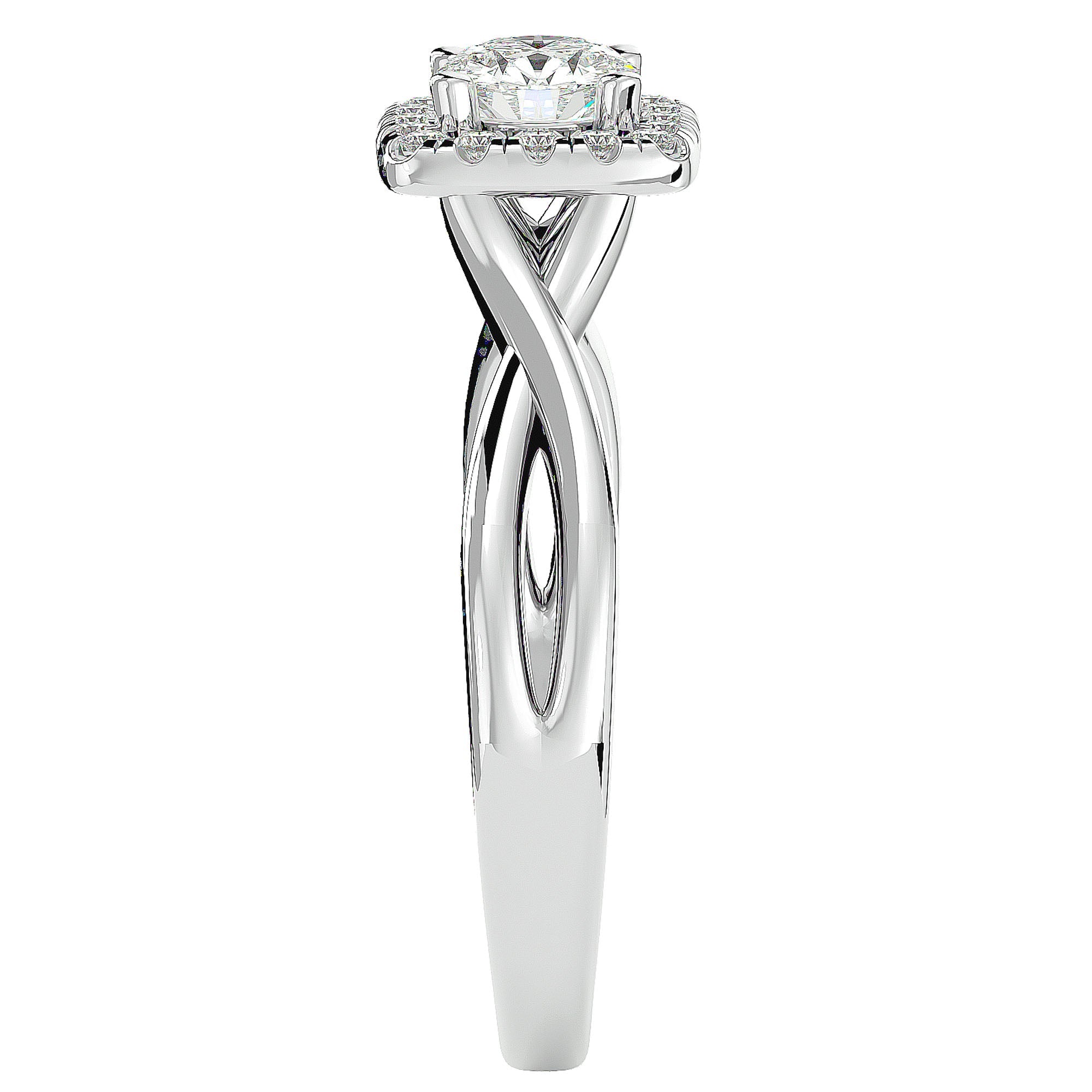 În centrul acestui inel strălucește un moissanite de 0.87 ct, înconjurat de un halo splendid de diamante pavé. Fiecare diamant este atent selecționat pentru claritatea și strălucirea sa, creând o aură de lumină care amplifică splendoarea pietrei centrale. Designul vintage adaugă o notă de nostalgie sofisticată, evocând o frumusețe atemporală și un stil regal.