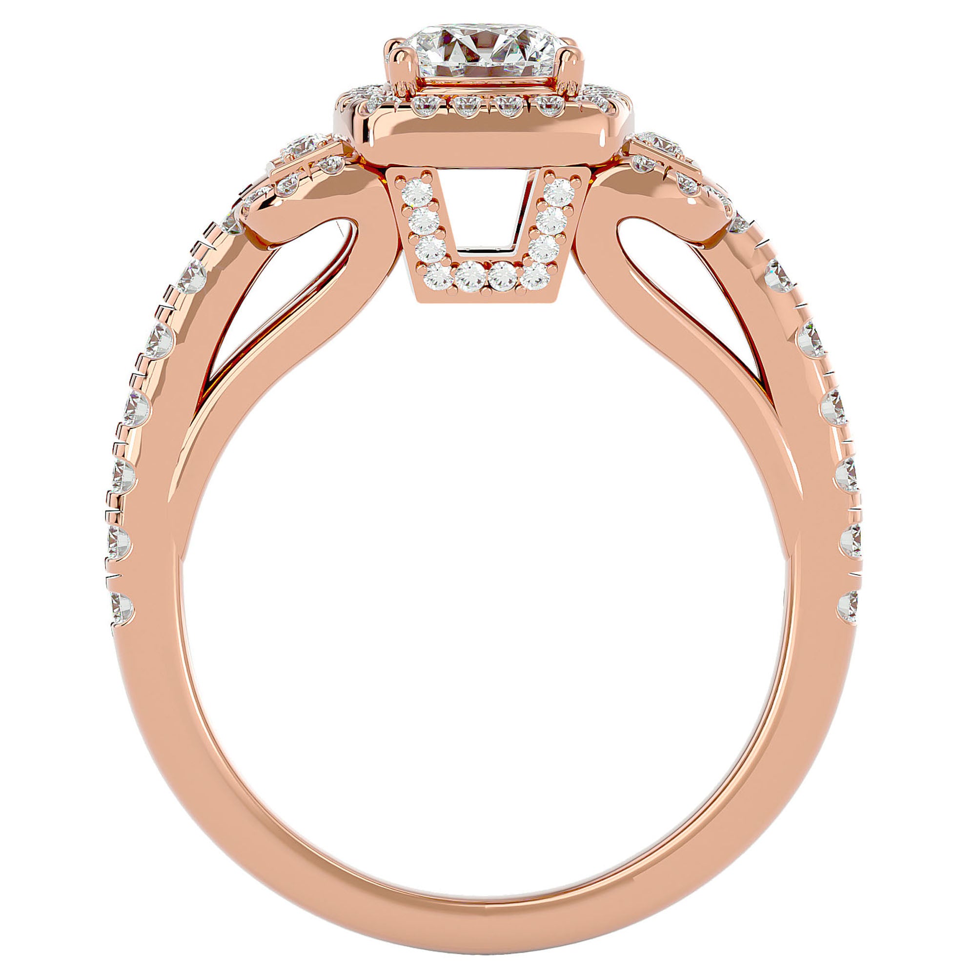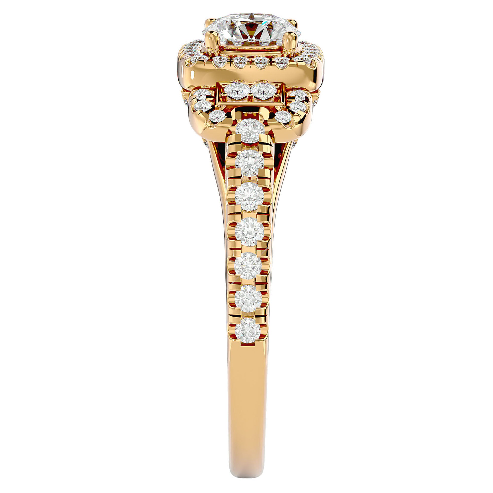 Diamantele create în laborator, cu o greutate totală de 1.21 ct, sunt atent selecționate pentru puritatea și strălucirea lor, montate într-un design pavé halo care accentuează frumusețea centrală a pietrei. Fiecare detaliu al acestui inel este gândit pentru a inspira o eleganță atemporală și un lux discret, reflectând o poveste de iubire unică și de neuitat.
