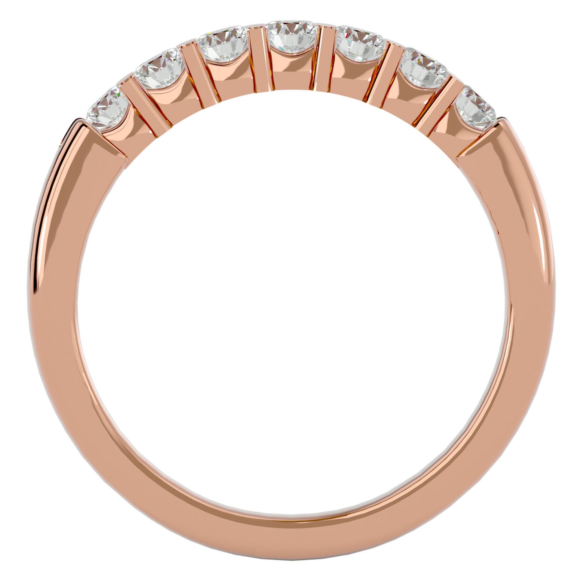 Inelul Eternity este încrustat cu 7 diamante create în laborator, totalizând 0.53 carate, fiecare piatră fiind meticulos așezată pentru a maximiza strălucirea și impactul vizual. Designul elegant permite diamantelor să capteze lumina din fiecare unghi, creând o aură de lumină și splendoare ce adaugă o notă de rafinament fiecărui gest.