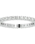 Această piesă valoroasă este împodobită cu diamante create în laborator ce totalizează 0.90 carate, fiecare diamant fiind meticulos selectat pentru a oferi o strălucire maximă. Dispunerea diamantelor pe bandă continuă simbolizează un legământ etern, oferind o imagine a infinitului printr-o strălucire care nu își pierde niciodată intensitatea sau frumusețea.