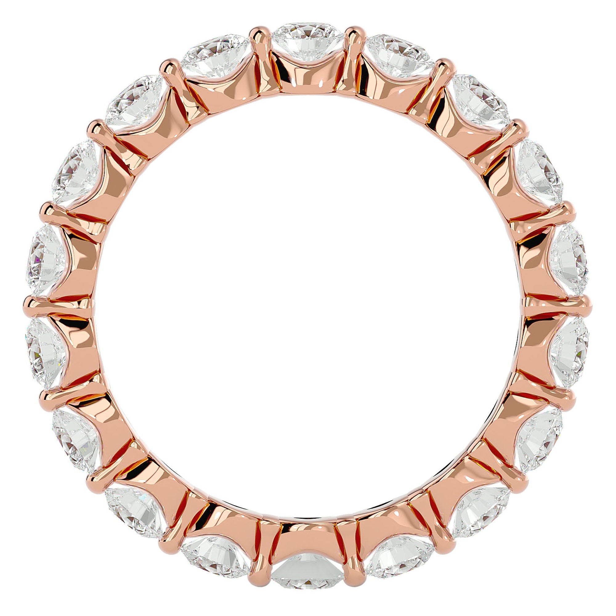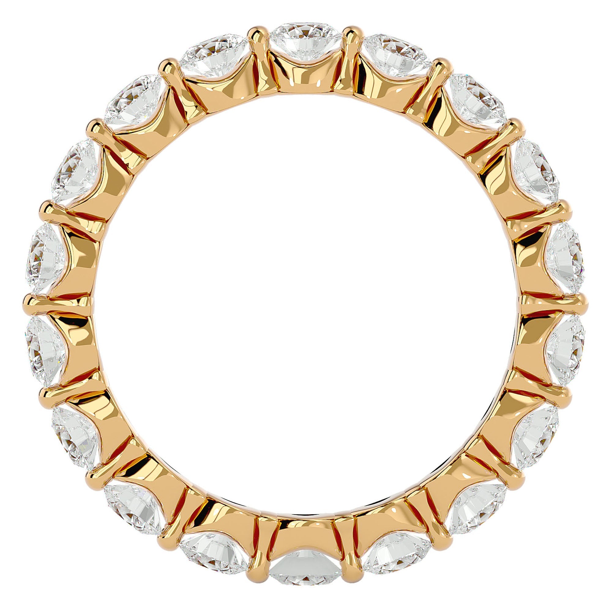 Inelul Eternity este minunat decorat cu diamante create în laborator ce totalizează 2.01 carate, fiecare piatră strălucind cu o claritate impecabilă. Designul continuu al inelului, cu diamante dispuse într-o bandă completă, este un simbol al promisiunii veșnice și al dragostei pure, învăluind degetul într-o lumină captivantă și elegantă.