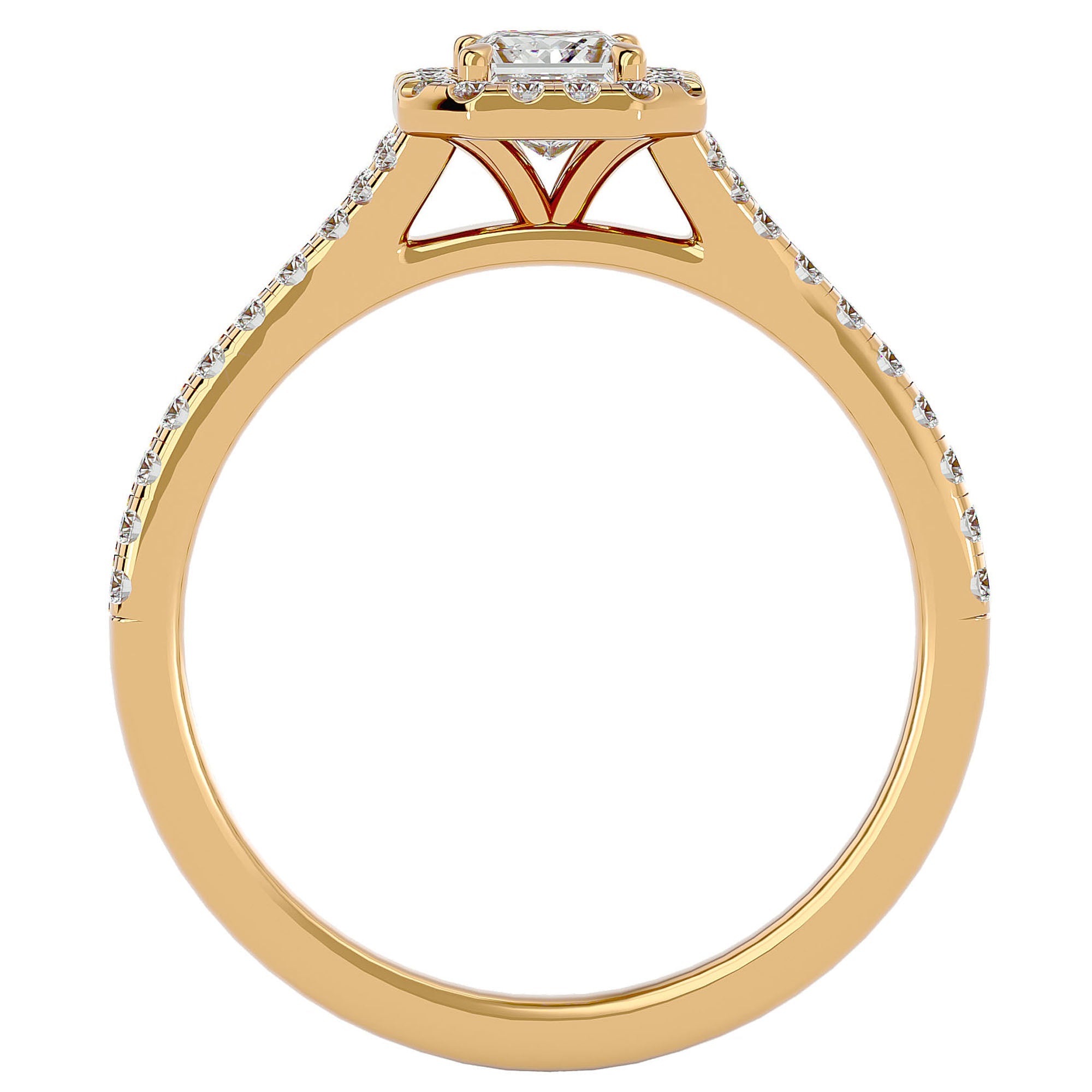 Inel Tăietură Pincess Si Cadru Halo din Aur 14k cu Diamante Naturale de 0.63 ct
