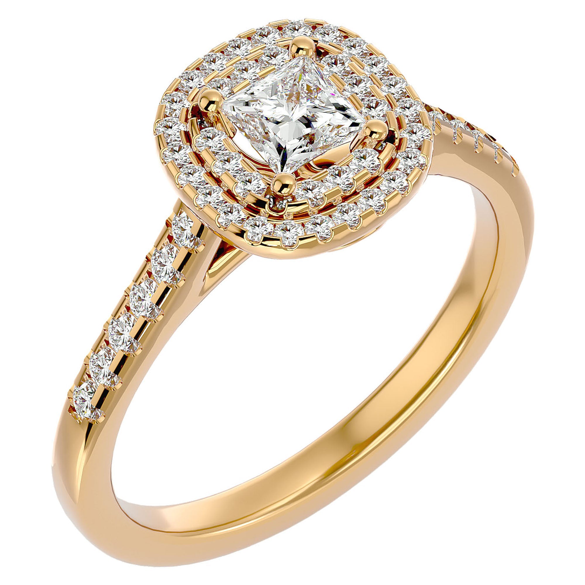 Inel Tăietură Princess Si Cadru Halo din Aur 14k cu Diamante Naturale de 0.83 ct