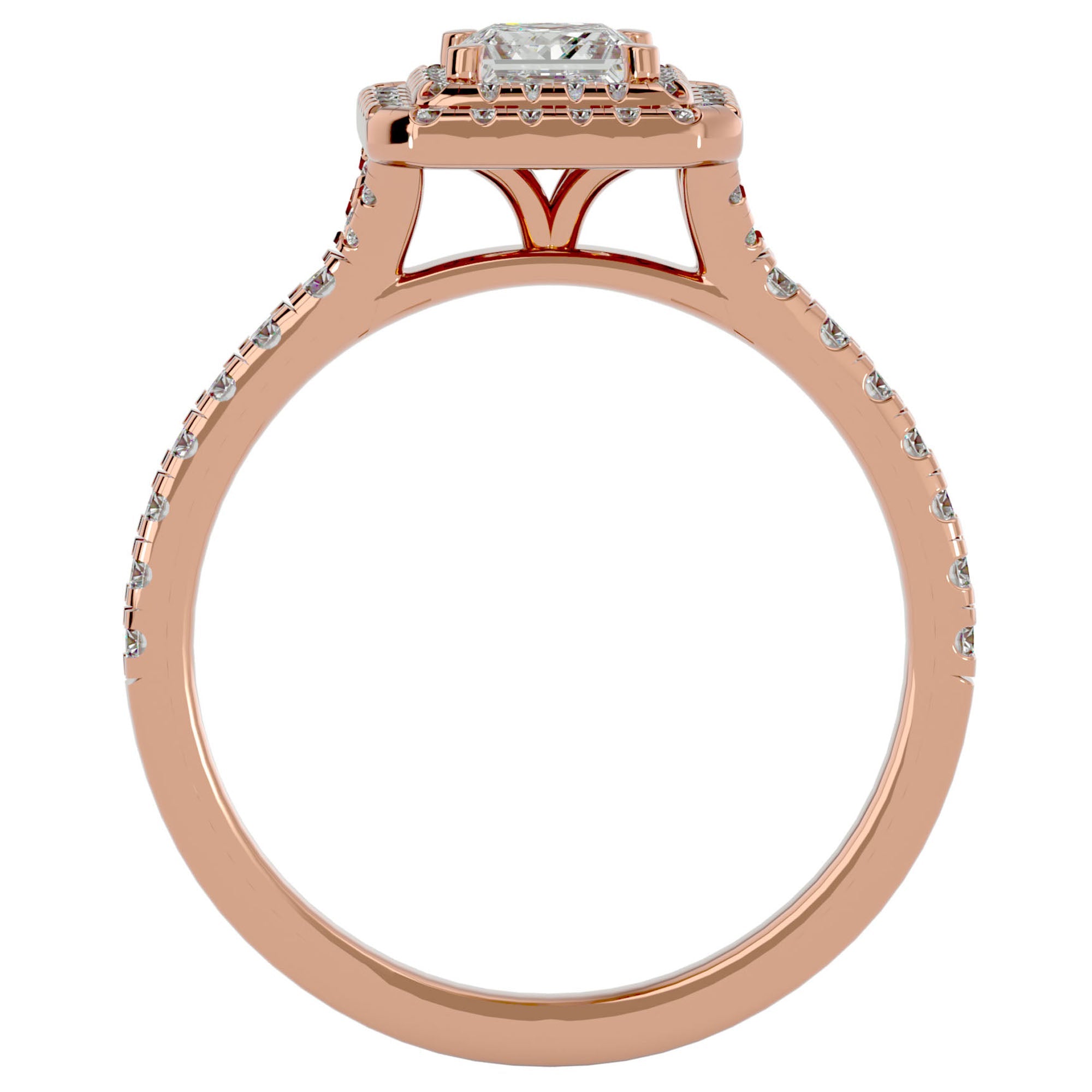 Inel Tăietură Princess Si Cadru Halo din Aur 14k cu Diamante Naturale de 1.02 ct