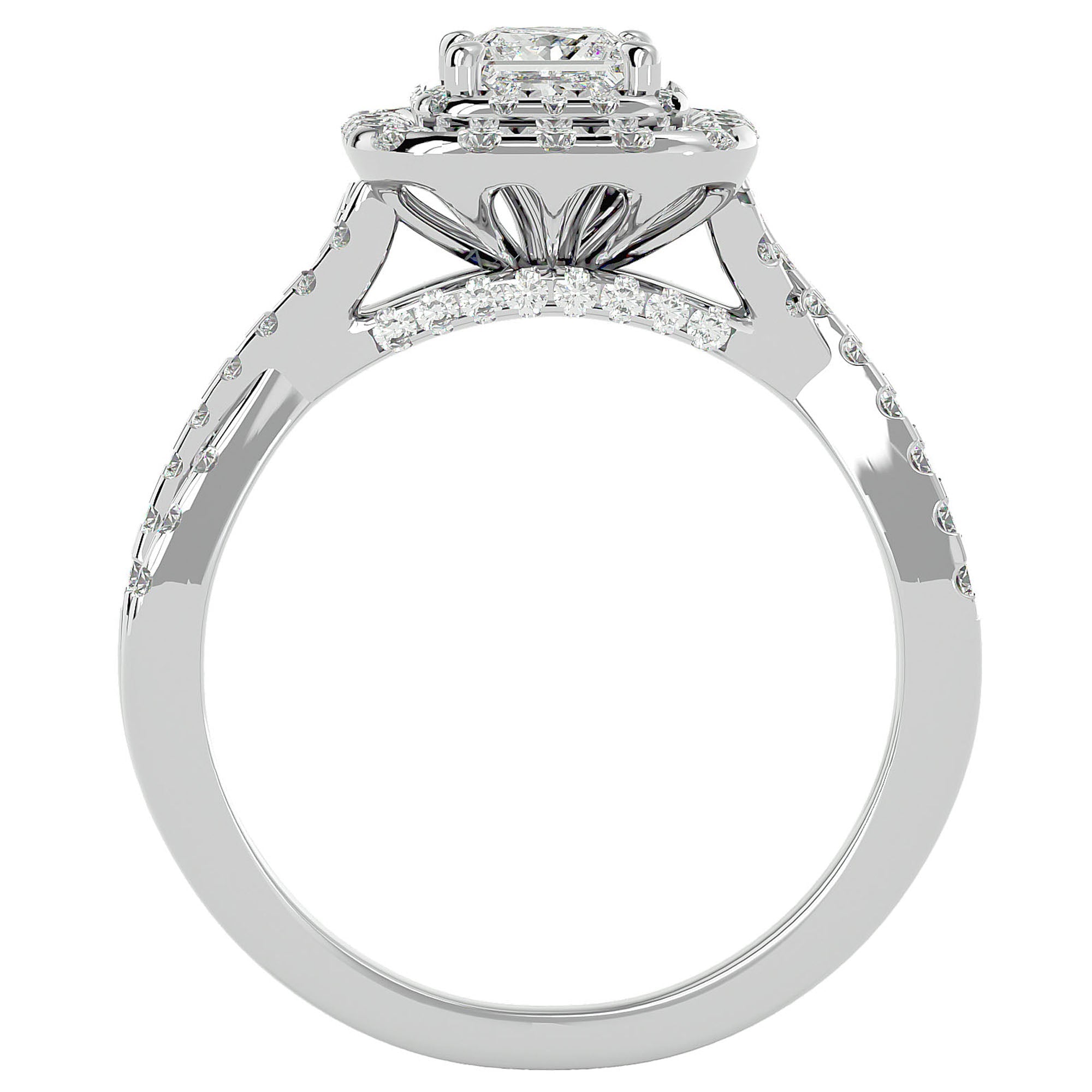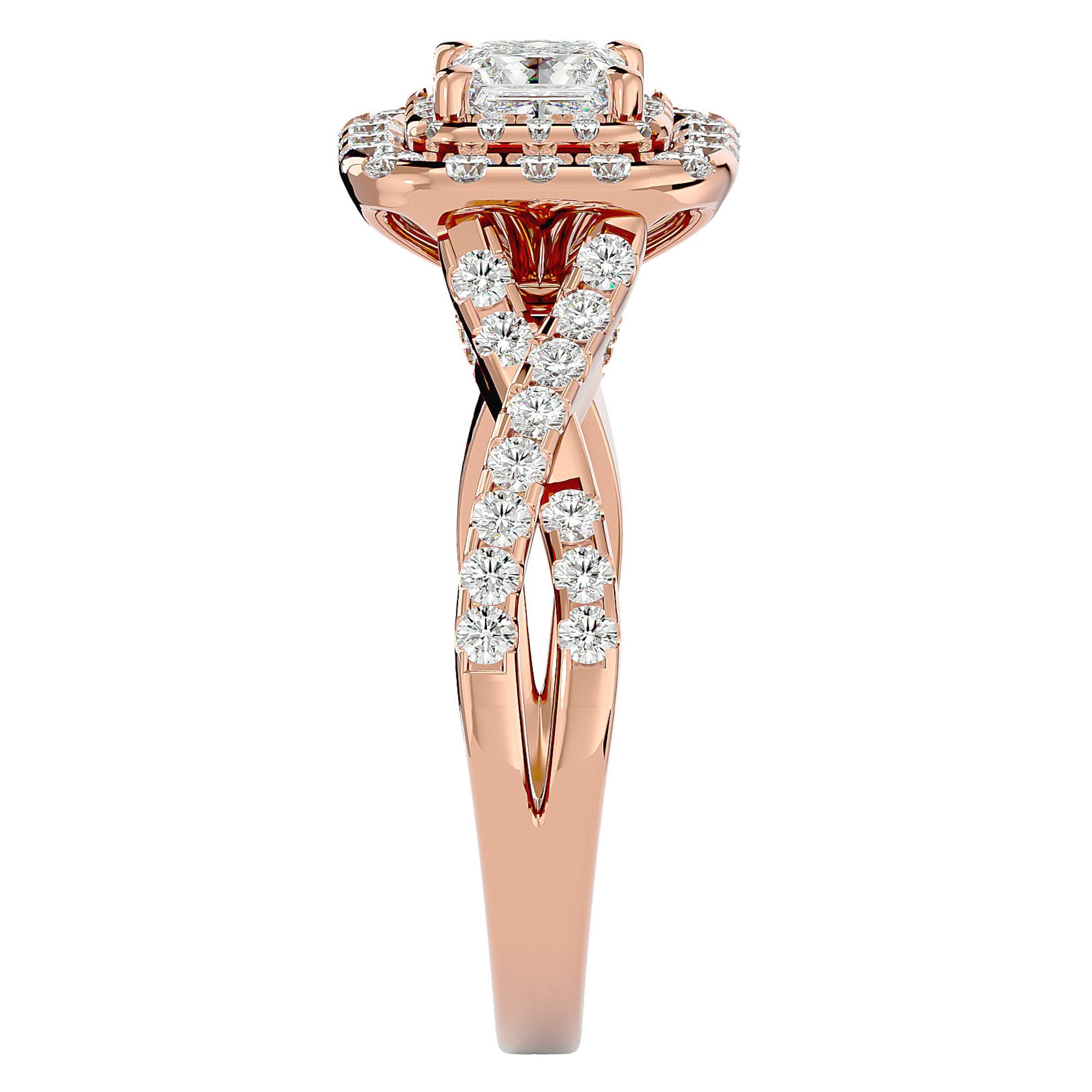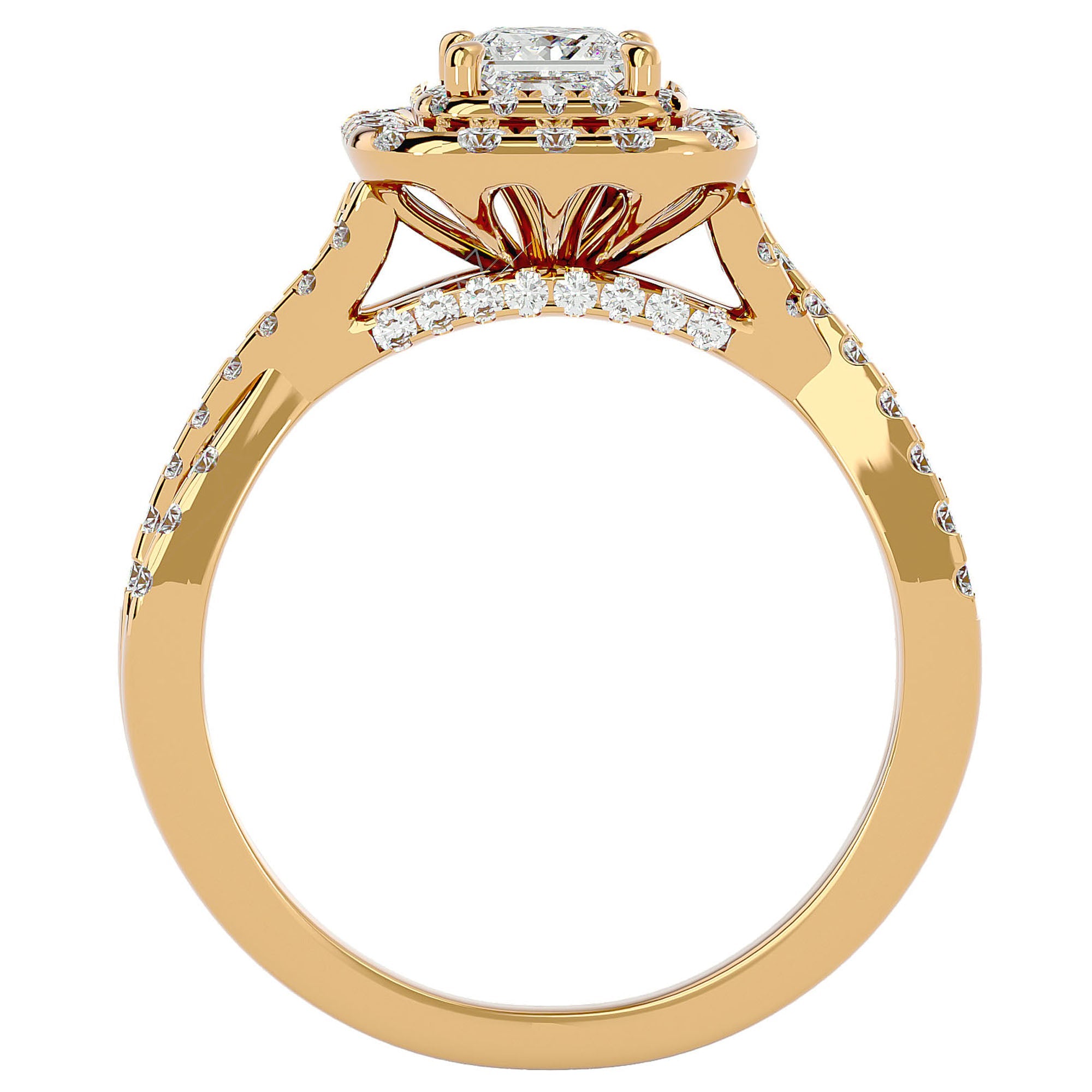 Inel Tăietură Princess Si Cadru Halo din Aur 14k cu Diamante Naturale de 1.30 ct