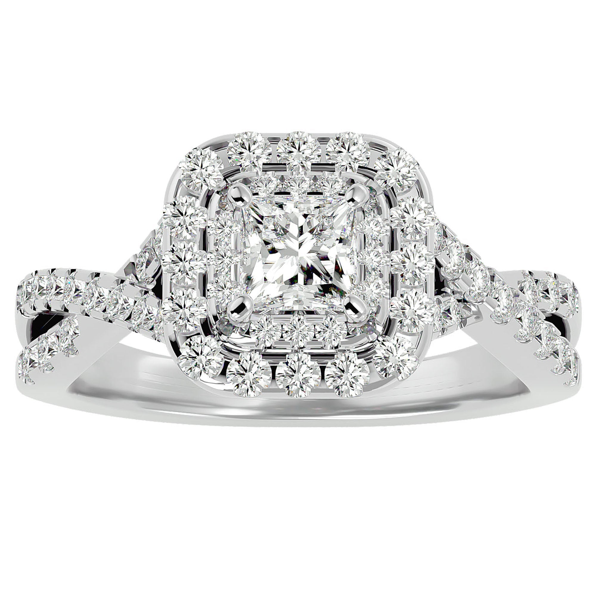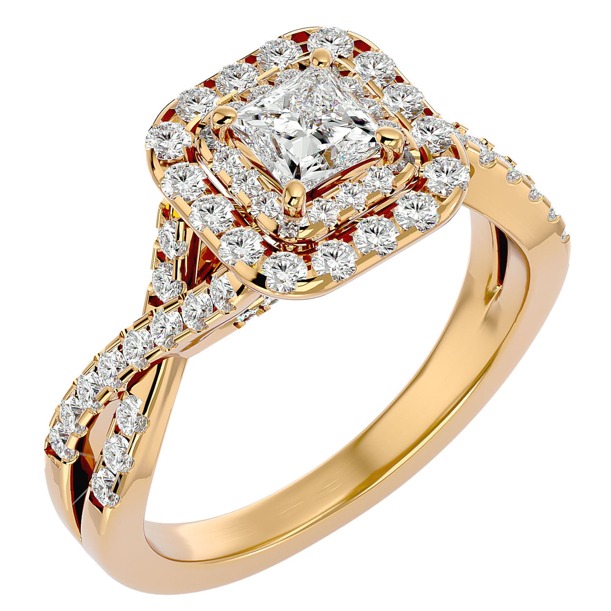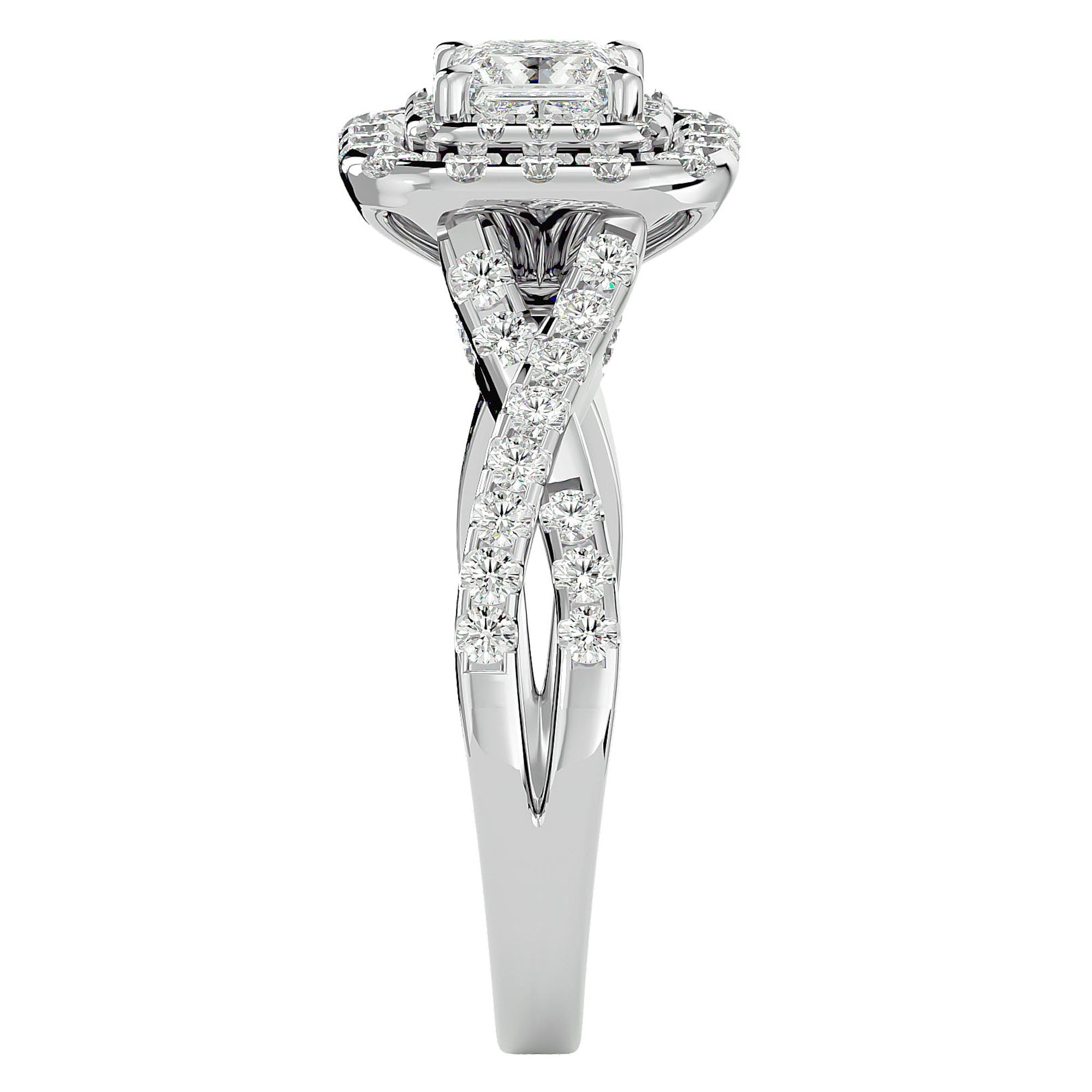 Inel Tăietură Princess Si Cadru Halo din Aur 14k cu Diamante Naturale de 1.30 ct