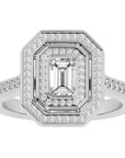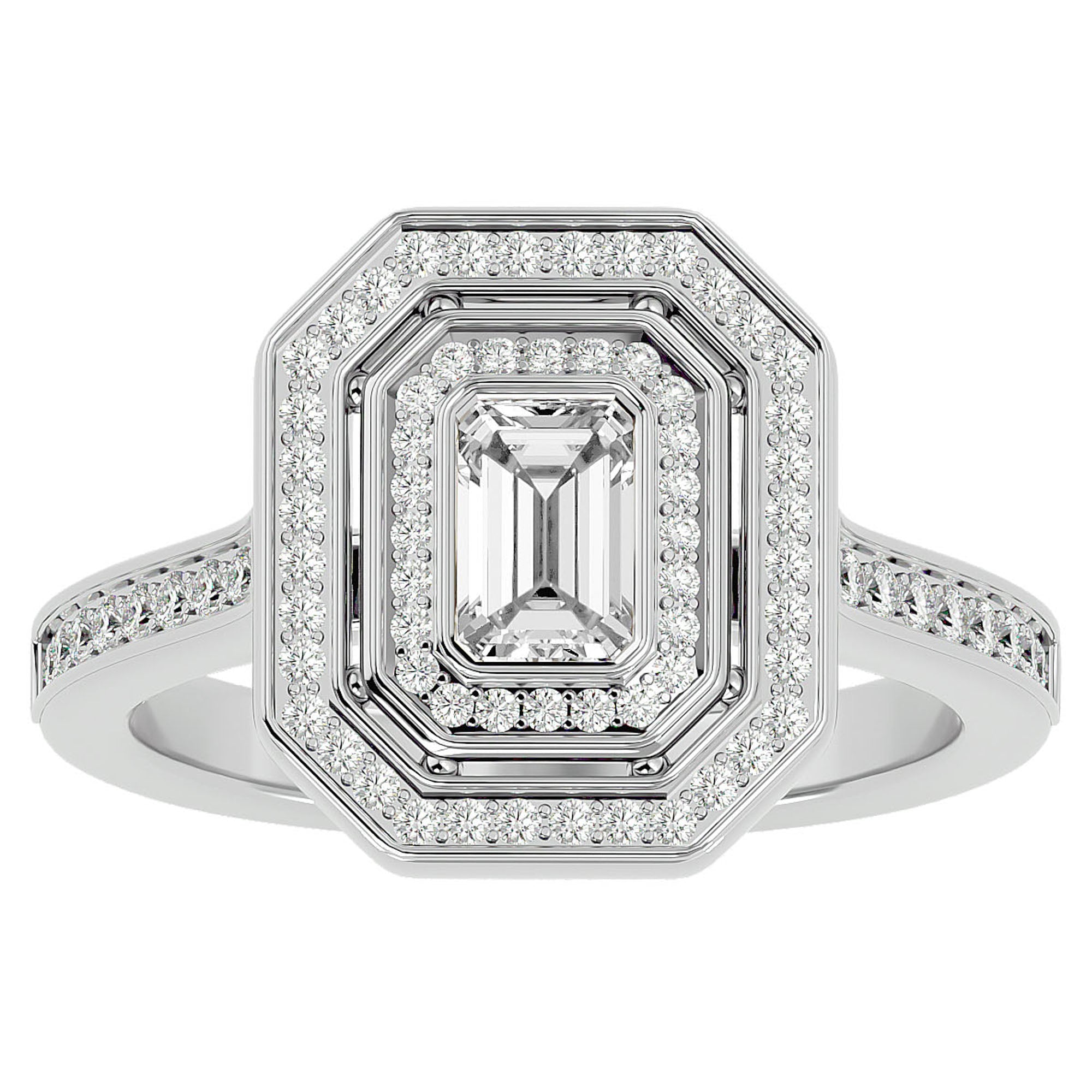 Inel Tăietură Smarald si Cadru Halo din Aur 14k cu Diamante Naturale de 0.91 ct