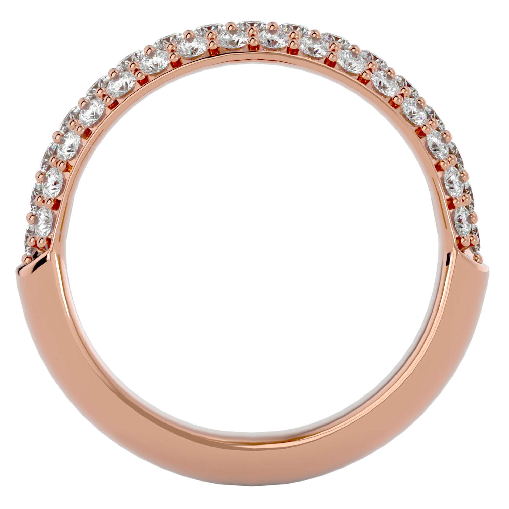 Inelul Promisiunii este meticulos decorat cu diamante naturale într-un aranjament pavé, totalizând 0.77 carate. Această tehnică de încrustare maximizază strălucirea fiecărui diamant, permițând luminii să danseze pe suprafața lor și să creeze un efect de lumină captivant și plin de splendoare. Fiecare piatră este aleasă pentru claritatea și luminozitatea sa, reflectând un angajament față de excelență și rafinament.