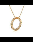 Designul acestui pandantiv este o veritabilă capodoperă, având forma unui cerc perfect, împodobit cu diamante naturale de 1.64 ct, fațetate cu măiestrie pentru a capta și reflecta lumina într-un dans fermecător de sclipiri. Fiecare diamant, selectat cu grijă, emană o strălucire intensă și captivantă. Pandantivul simbolizează eternitatea și continuitatea vieții, transformând această bijuterie într-o declarație de stil și rafinament.