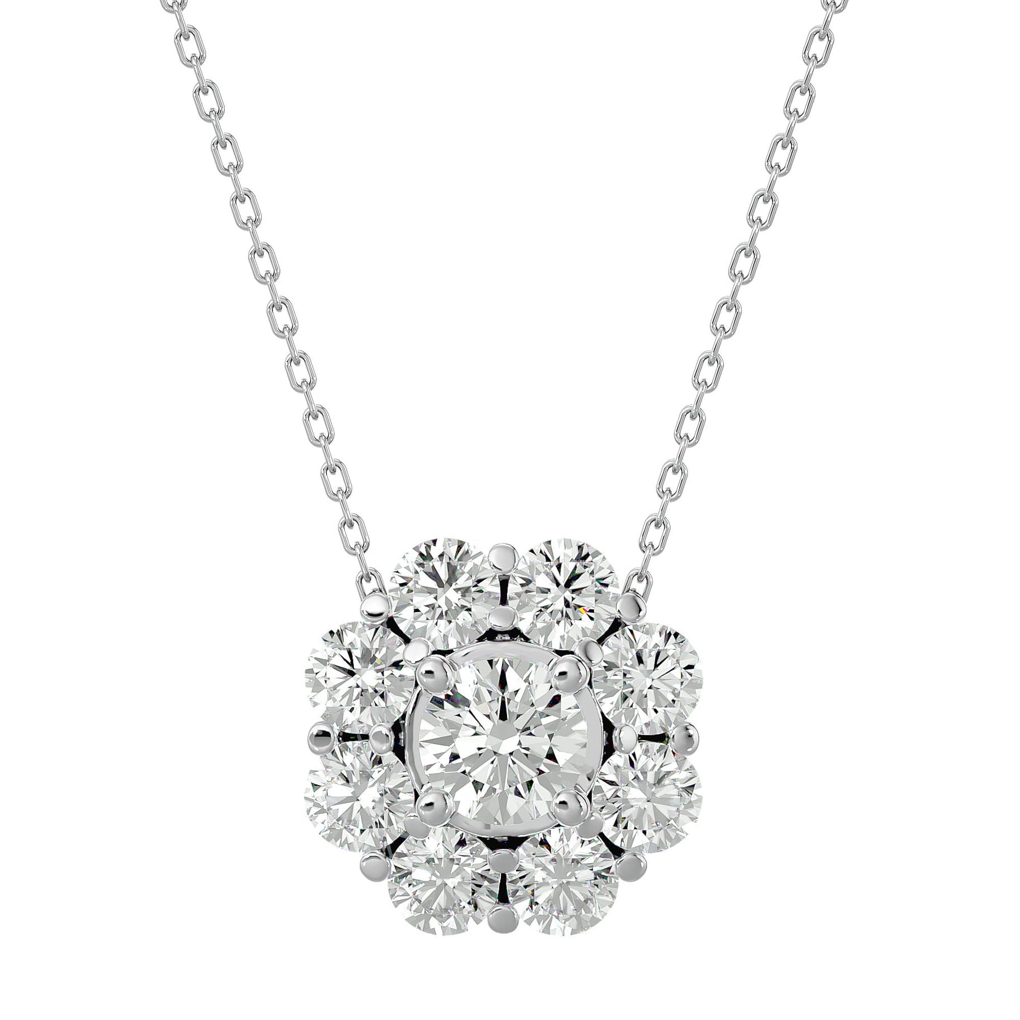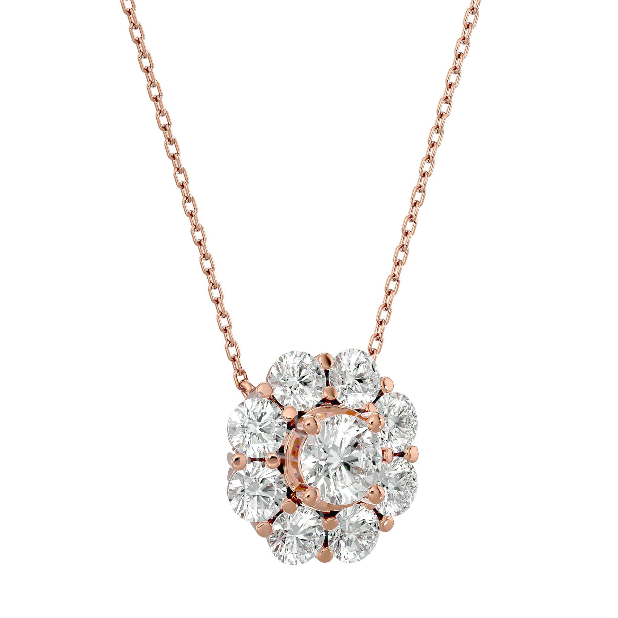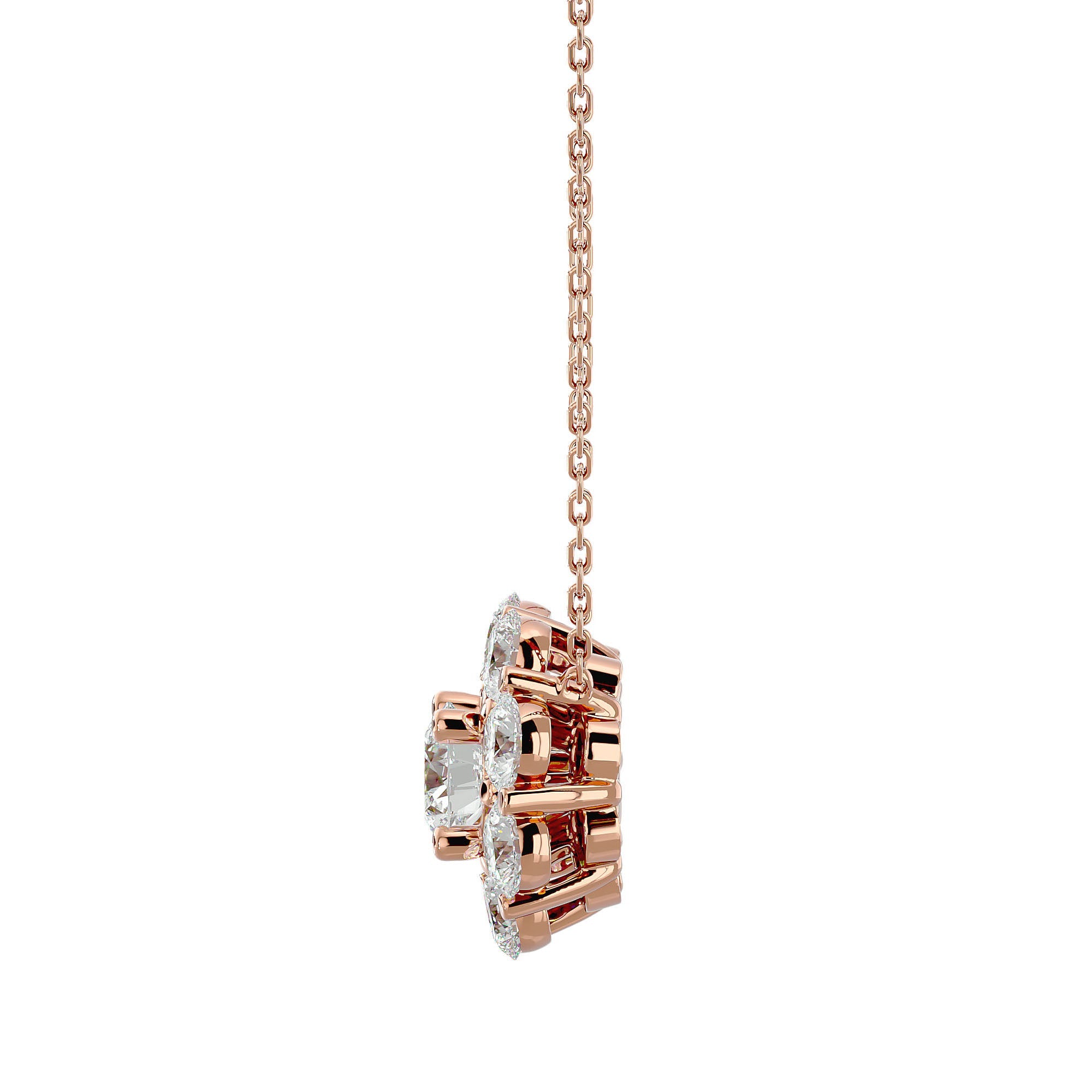 Designul acestui pandantiv este o veritabilă capodoperă, având forma unei flori elegante, împodobită cu diamante naturale fațetate cu măiestrie pentru a capta și reflecta lumina într-un dans fermecător de sclipiri. Fiecare diamant, selectat cu grijă, emană o strălucire intensă și captivantă. Pandantivul simbolizează frumusețea eternă și rafinamentul suprem, transformând această bijuterie într-o declarație de stil și distincție.