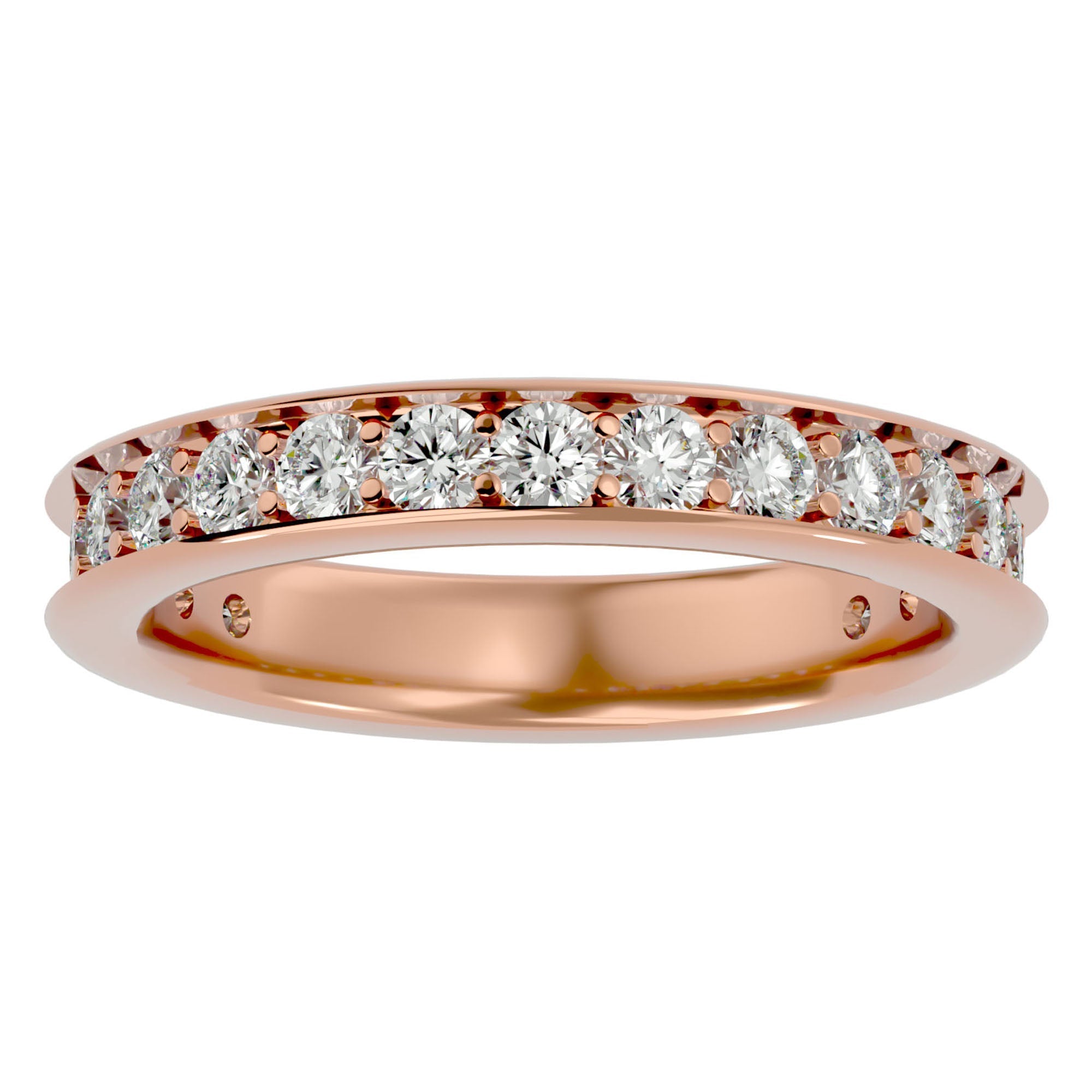 Această verighetă splendidă este încrustată cu diamante create în laborator care totalizează 1.12 carate, fiecare piatră fiind meticulos aleasă pentru claritatea și strălucirea sa exemplară. Designul continuu al verighetei, cu diamante dispuse într-o succesiune armonioasă, simbolizează o promisiune veșnică și un legământ etern, reflectând lumina într-un spectacol de scânteie și rafinament.