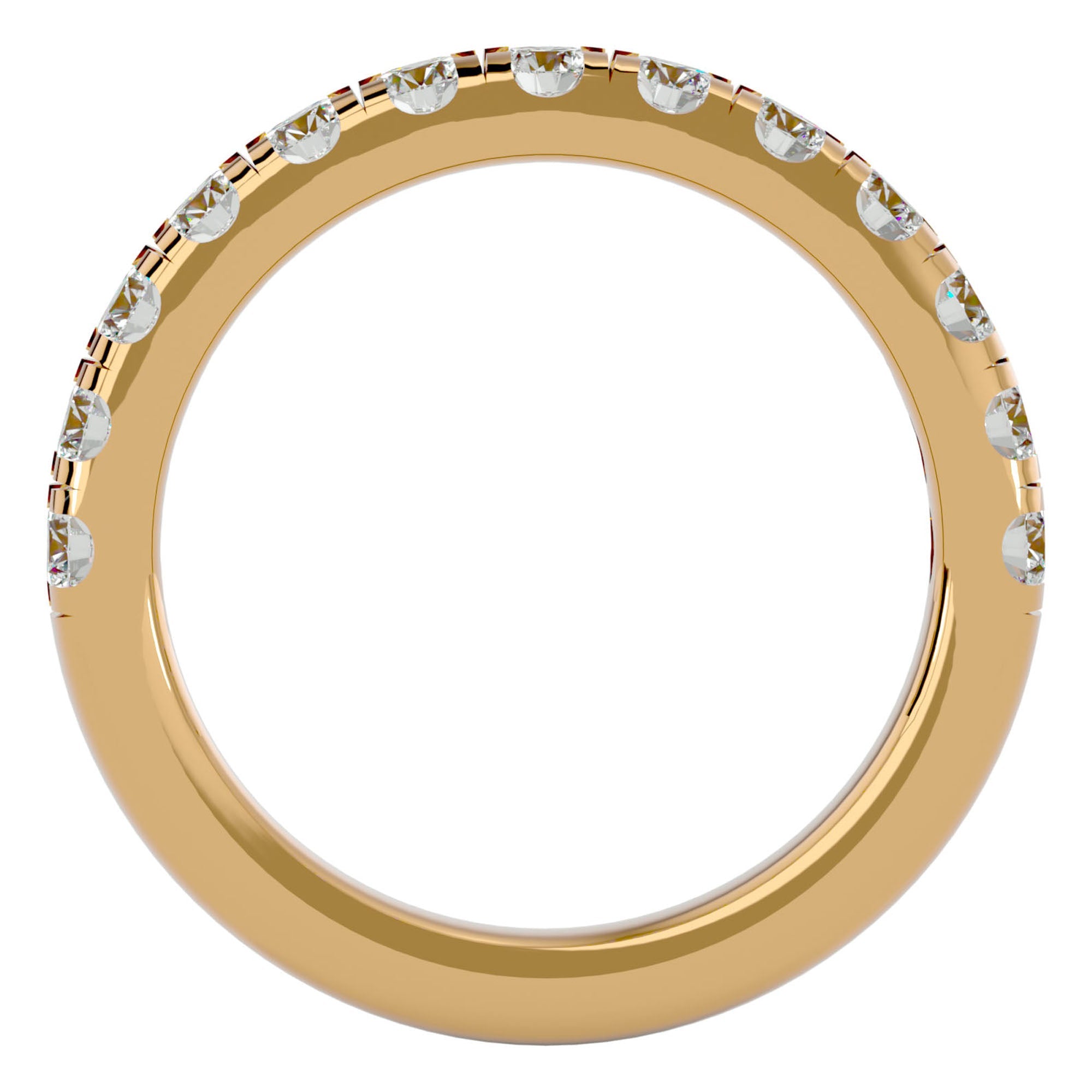 Această verighetă este încrustată cu diamante naturale, totalizând 0.96 carate, într-un design care simbolizează continuitatea și Eternity. Fiecare diamant este ales pentru strălucirea și claritatea sa, creând o bandă de lumină ce învăluie degetul într-o strălucire regală și un rafinament de neegalat.