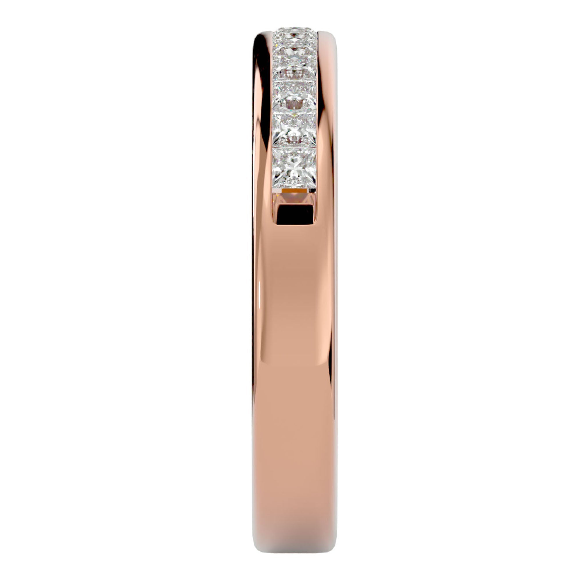 Această verighetă este meticulos împodobită cu diamante naturale, însumând 0.55 carate. Fiecare diamant, cu o claritate de excepție, este perfect aliniat pentru a crea o bandă de lumină ce înconjoară degetul, reprezentând un cerc infinit de iubire și fidelitate. Designul sofisticat și continuu al verighetei reprezintă o promisiune eternă, strălucind cu o lumină care nu își pierde niciodată splendoarea.