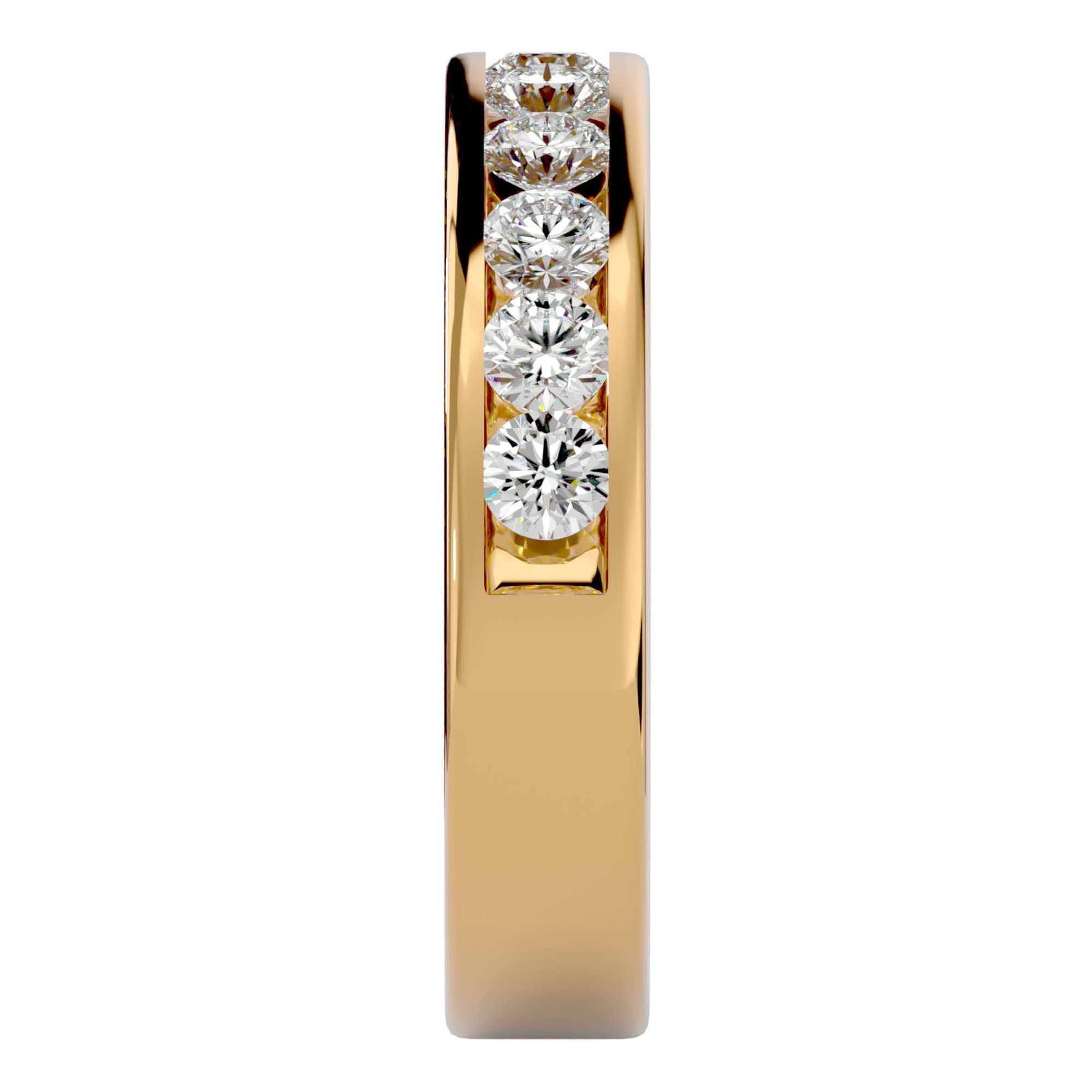 Această verighetă este meticulos încrustată cu diamante naturale, totalizând 1.01 carate. Fiecare diamant este riguros selecționat pentru strălucirea sa excepțională, reflectând lumina într-un dans de scântei ce aduce un plus de splendoare fiecărui gest. Designul continuu al verighetei simbolizează continuitatea și fidelitatea, cu o serie de diamante care înconjoară degetul într-o aură de lumină nobilă și rafinament autentic.