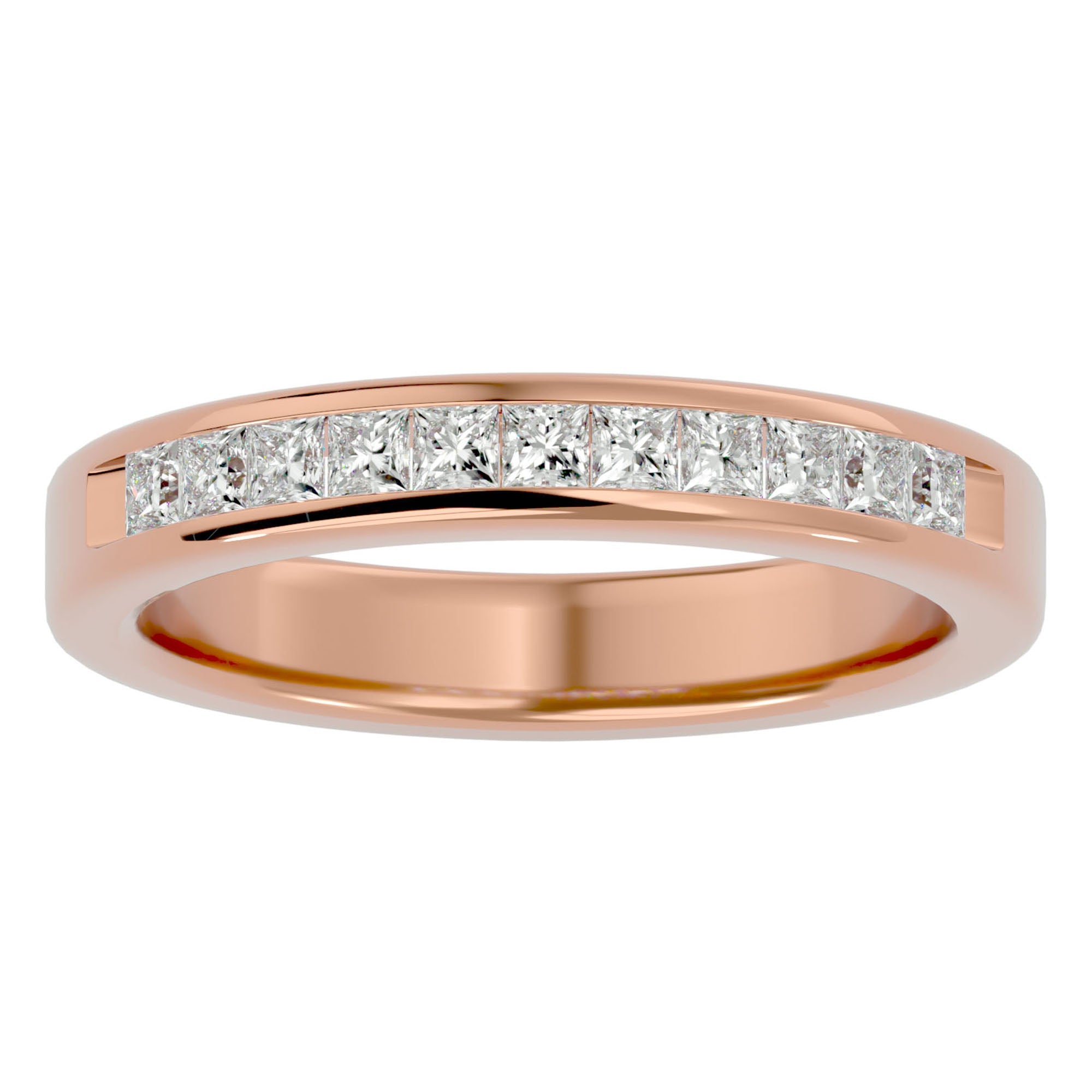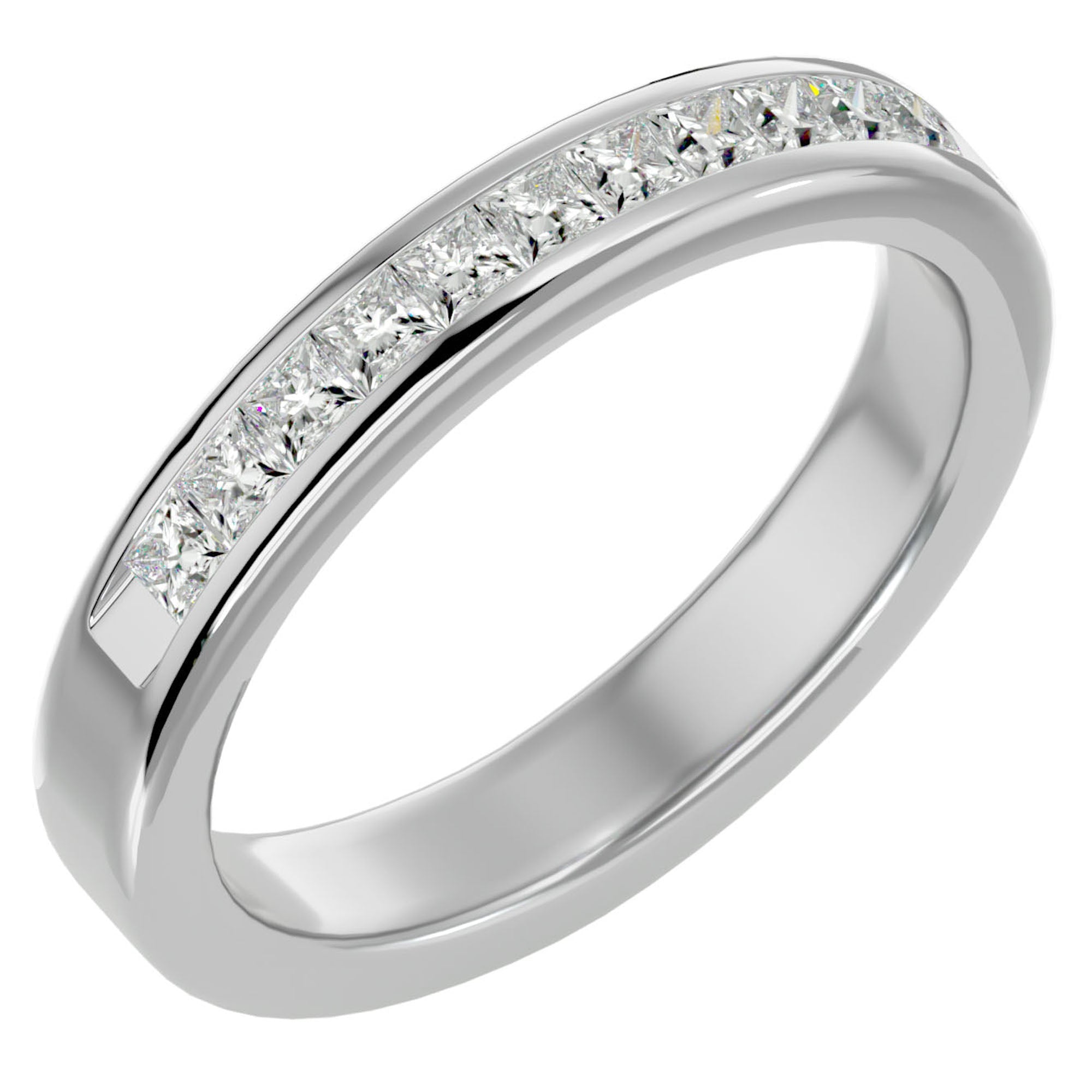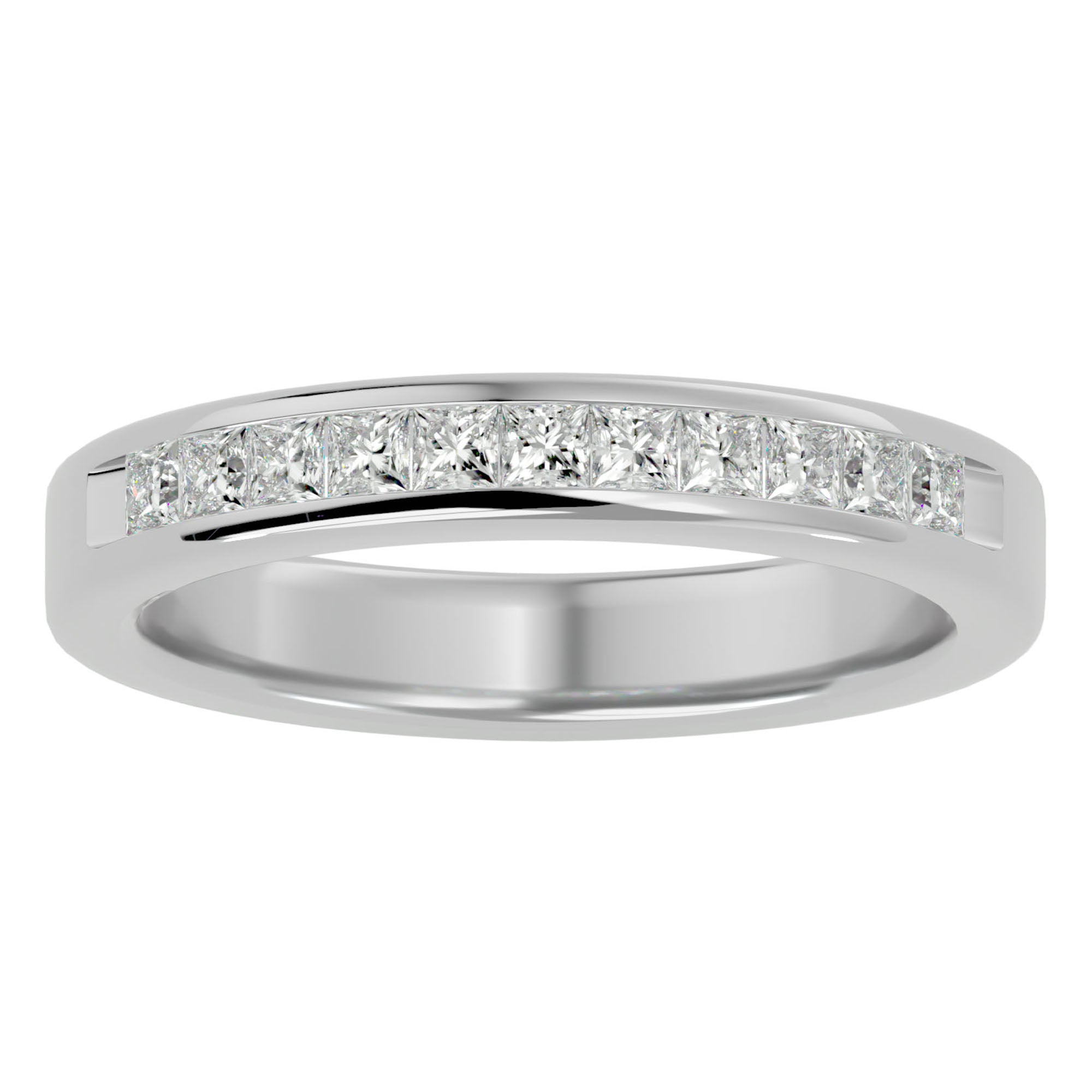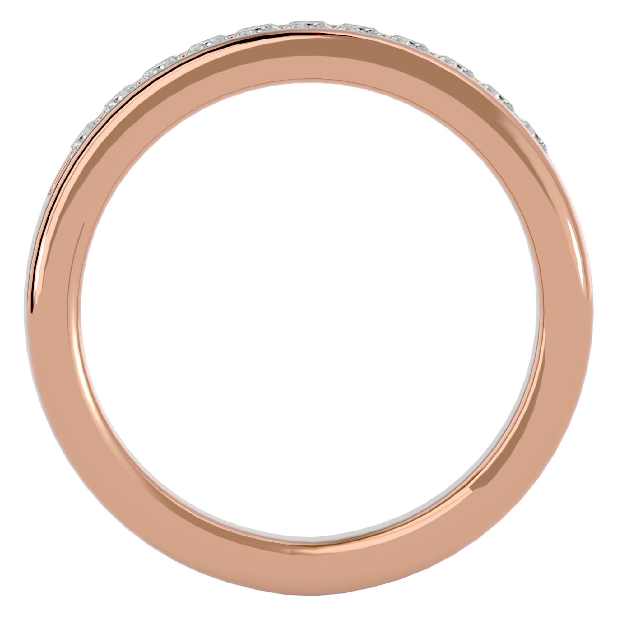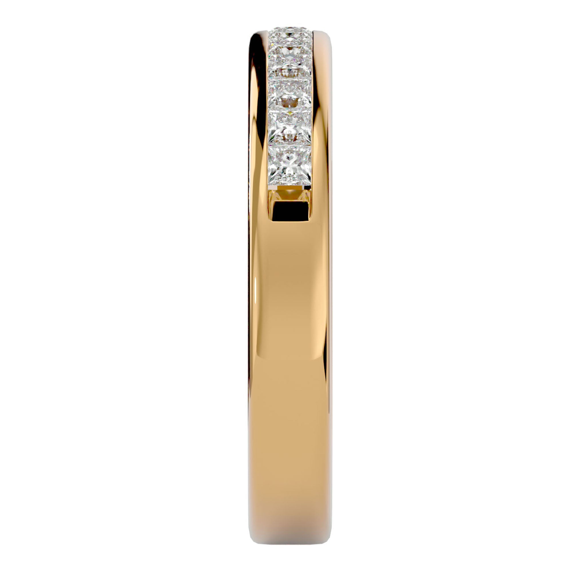 Această verighetă este meticulos împodobită cu moissanite, însumând 0.55 carate. Fiecare diamant, cu o claritate de excepție, este perfect aliniat pentru a crea o bandă de lumină ce înconjoară degetul, reprezentând un cerc infinit de iubire și fidelitate. Designul sofisticat și continuu al verighetei reprezintă o promisiune eternă, strălucind cu o lumină care nu își pierde niciodată splendoarea.